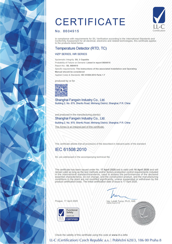 級精度產(chǎn)品制造計量許可證的極少數(shù)合法企業(yè)之一。并且率先采用了國際通用的分度號色標(biāo),從而使安裝在設(shè)備上的產(chǎn)品的分度號非常醒目,便于識別和更換,因此多年來受到熱工維檢人員的贊譽(yù)。